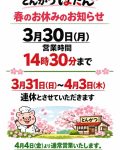 とんかつぼたん 春のお休みのお知らせ いつもご来店ありがとうございます